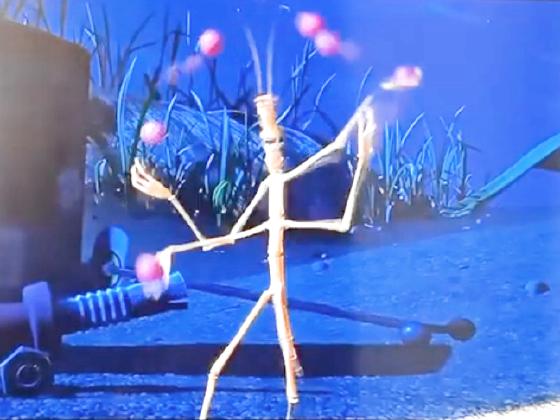 At 1:02:28, a walking stick bug (plasmid)