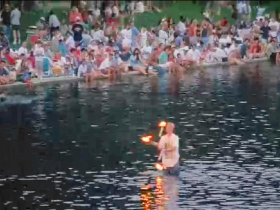 a nice 4 second view of Adam Zimman standing in the reflecting pool