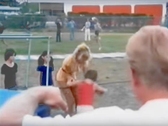 in the background, seen on and off for nearly 2 minutes.