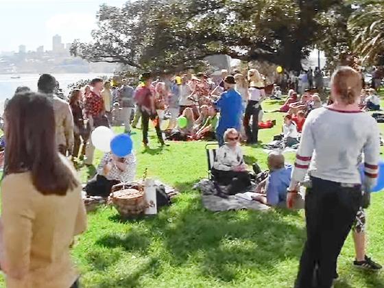 At 1:57:25, in the final scene of the movie, there are 2 jugglers passing