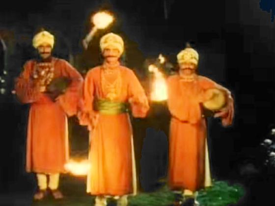 beating drums, and the 3rd juggling 3 torches, all seen for 14 seconds.