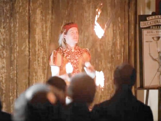 juggles 3 torches.