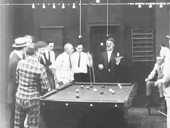 W.C. Fields performs several pool table tricks. Unfortunately, an