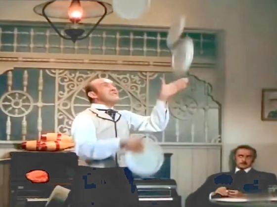 at the opening of the new Palace Saloon. He juggles 4 plates well in
