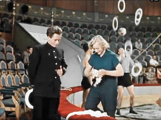 At 0:34:24, during a practice session at the circus, Ivan Khromov