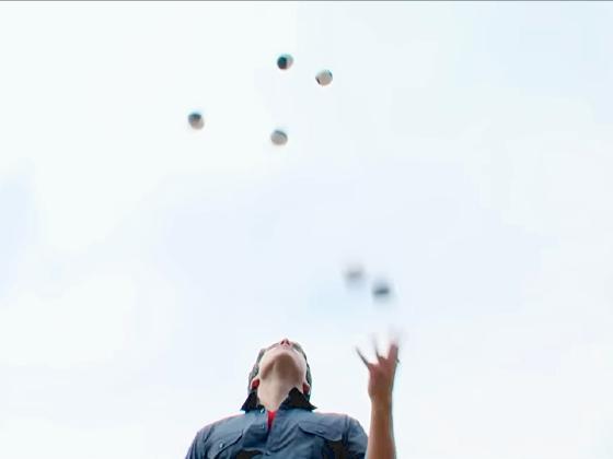 and gives a quick juggling lesson.