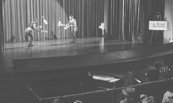 At 04:45, a juggling team called the Blake Brothers is seen warming up